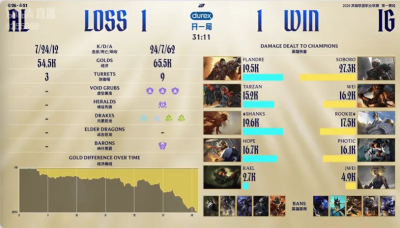 天天盈球-IG 1-1 AL:军旗落地链刃索敌,IG团战阵容强势扳回一城